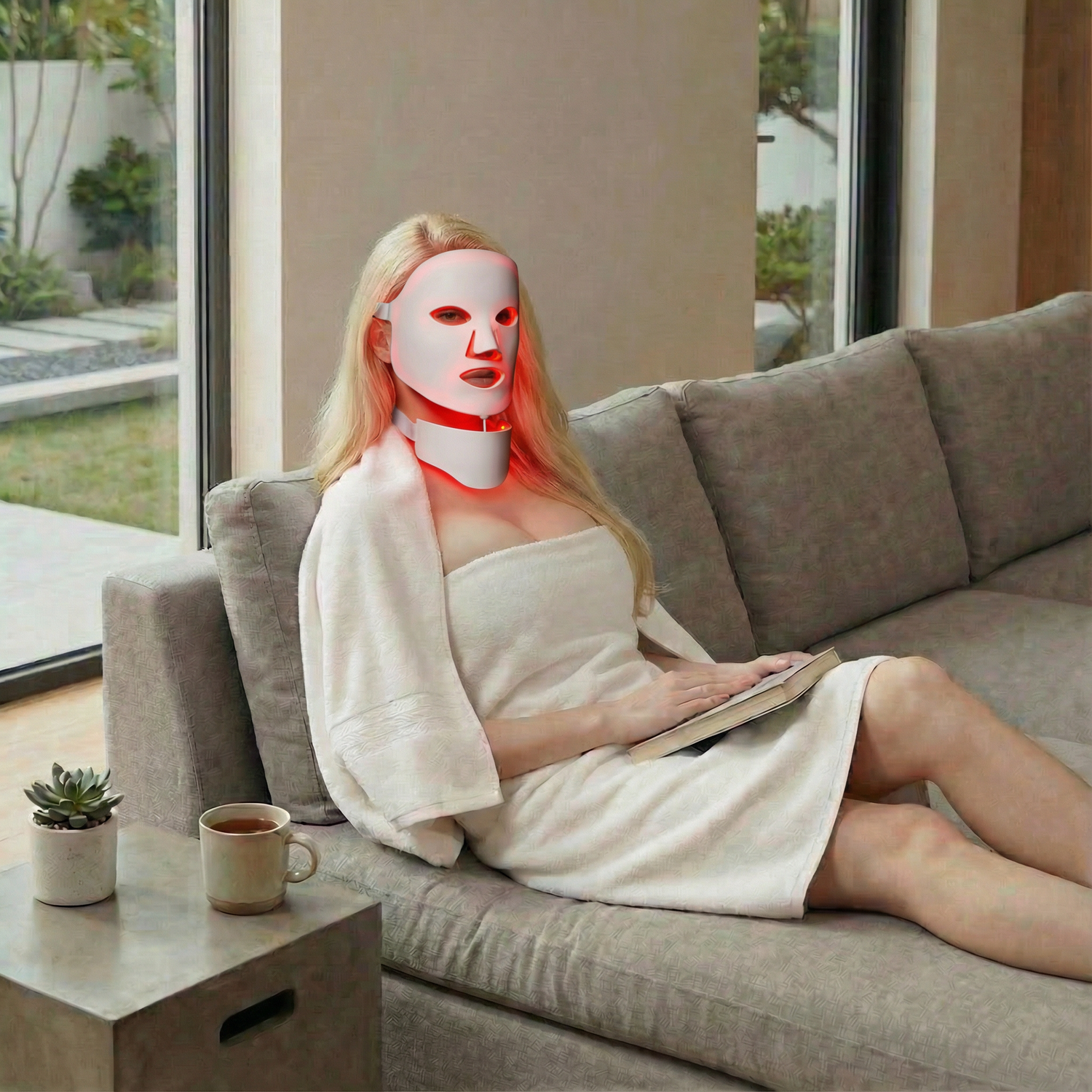 Rotes Licht regt die Kollagenproduktion an und sorgt so für straffere Haut, blaues Licht bekämpft Hautunreinheiten, gelbes Licht hilft, Altersflecken zu mildern, und grünes Licht lindert Hautreizungen.